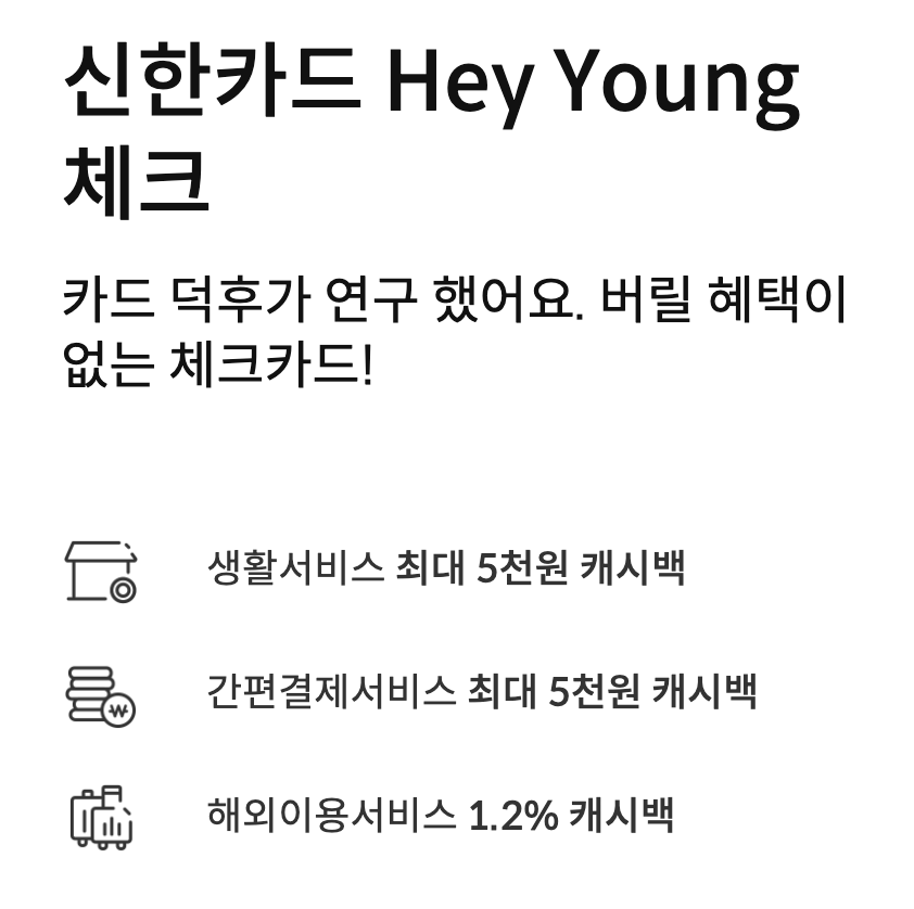 신한카드 Hey Young 체크카드 기본 정보