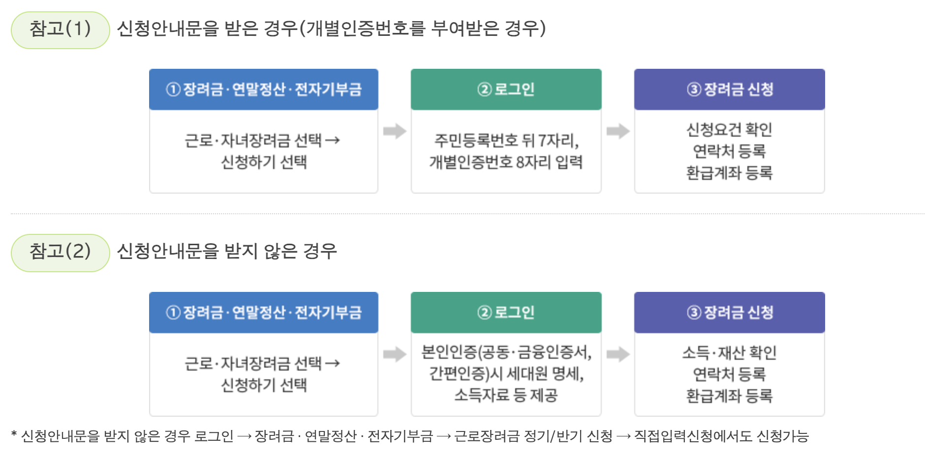 근로장려금을 신청하는 방법은 크게 정기 신청과 반기 신청으로 나뉩니다.